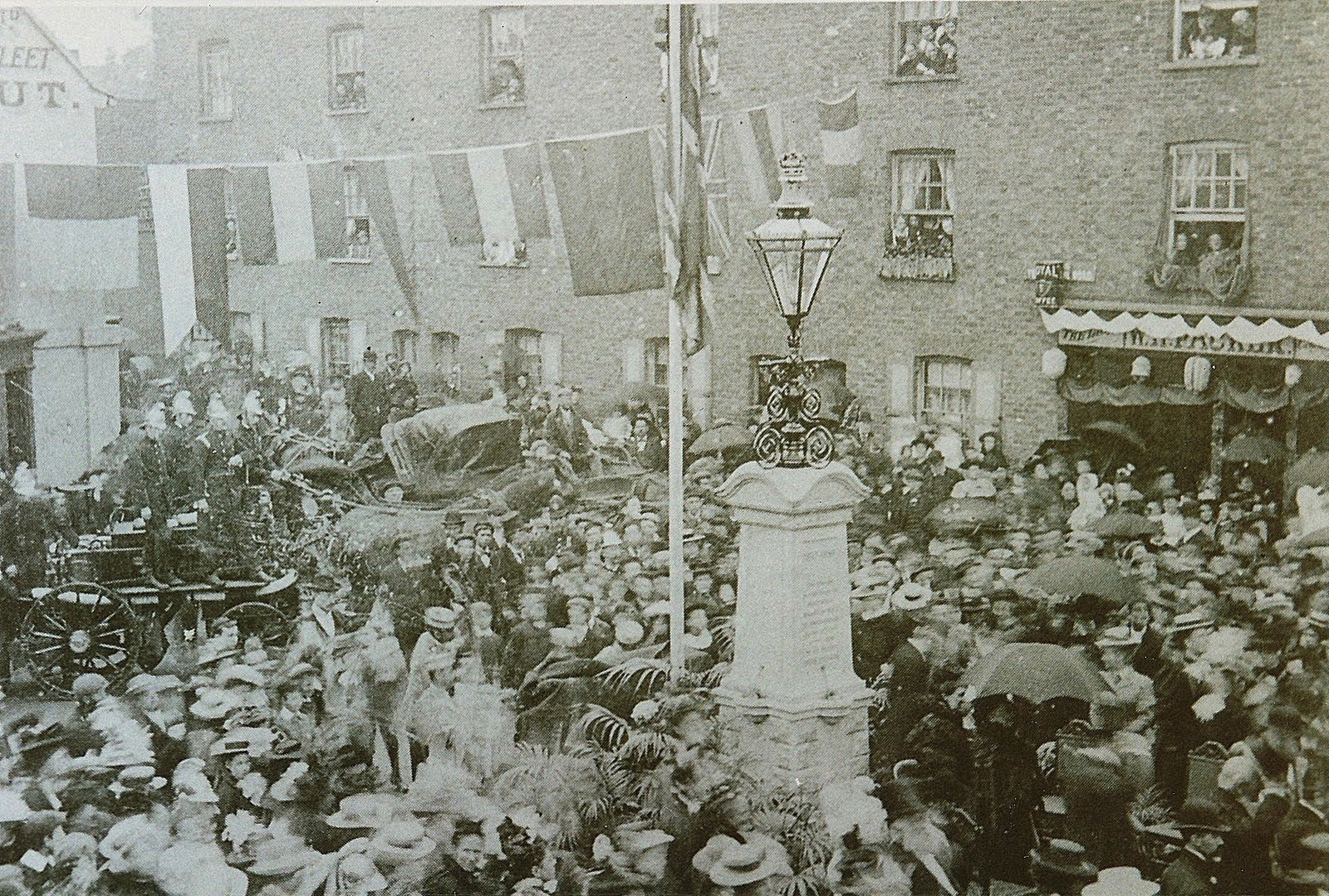 The crowds celebrating the inauguration of The Jubilee Fountain outside The Foresters. The ceremony was performed by Princess Hohenlohe (Queen Victoria’s niece) on 8th June 1898.